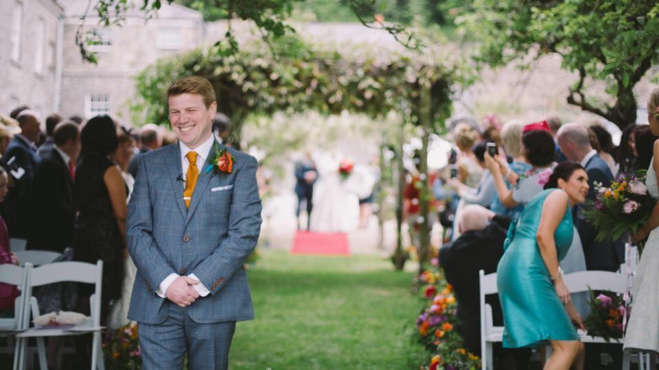 They were married by Joe Armstrong in an orange-themed outdoor humanist ceremony on June 12th, 2015, at The Millhouse, Slane. A traditional hand-tying ceremony made it special.
