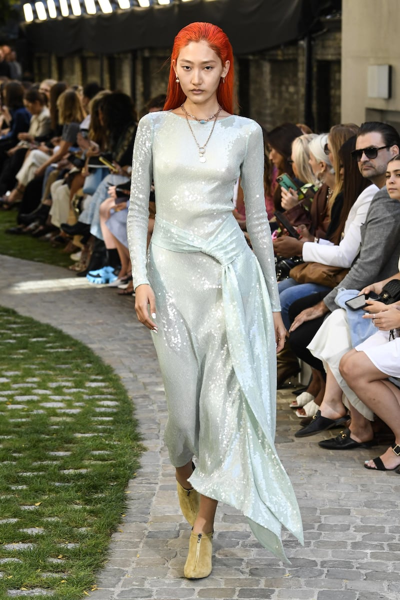 Some of Mouret’s words flow over me like a stream of consciousness. He loves bees. Ireland smells different, it’s something in the air, like the Pyrenees. Irish people are like family to work with. Fabric is an ally as well as the final step in our identity. Heavy boots cause lightness – when you take them off. Non sex is a sexuality. He’s a pessimist, but has huge empathy, and really wants to believe people are amazing and good. Sometimes he just needs to be left alone. All in all, it’s hard to pin him down, and I get the sense he wins a lot of arguments because, following him, you tend to forget your own point.