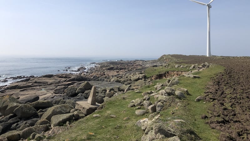 After Carne Pier, the path reverts to a field edge along a shore of boulders and storm-washed platforms of pink granite, and soon enters an elemental world of sky and sea and stone that is the “Holy Headland”, as Ptolemy called it. And despite the rhythmic “swish” of the windmills, a spiritual energy indeed permeates this place.