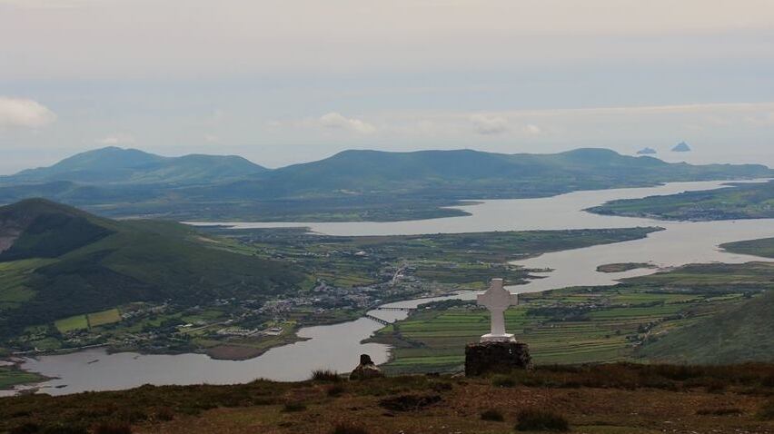 Cnoc na dTobar has been a sacred site since prehistoric times. Walk follows upwards 14 Stations of the Cross on the mountain's ancient trail.