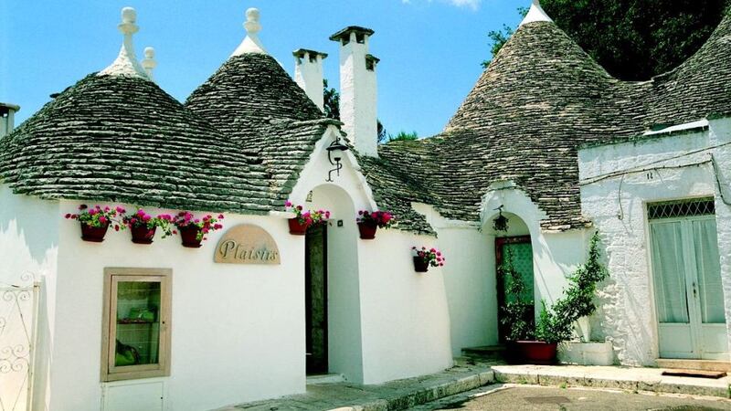 Inland the Itria Valley is beautiful and dotted with ancient trullis, the conical stone houses of the region. It is also close to the heritage town of Alberobello, whose whitewashed trullis huddle together along narrow streets.