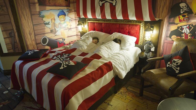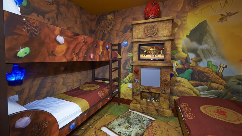 The experience begins with the Lego-themed bedrooms. We were in an Adventure Room which, like every room, lift and corridor in the hotel, cares not for restraint. They are utterly dedicated to the Lego theme from patterned carpet floor to decorated ceiling, from the talking lift to the Legoland toiletries (oh, you can bet we swiped all that).