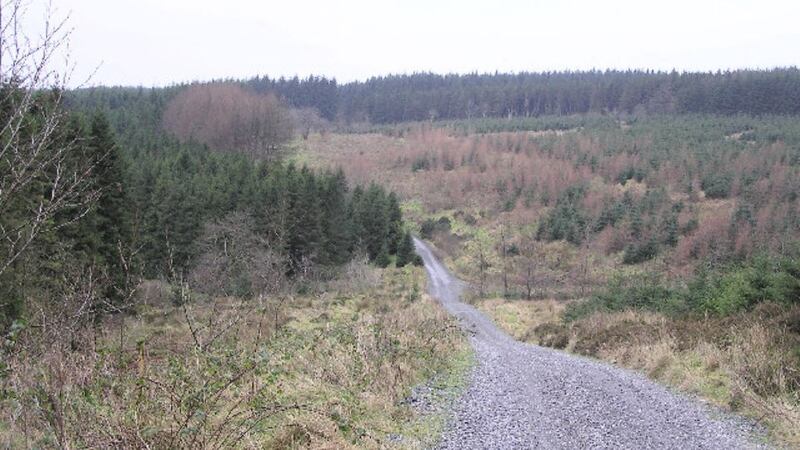 Eventually, the trail breaks out on to a broad forest track where we continued our ascent through a planting of mature spruce trees. Soon we reached the highest point of the walk at 350m, where the Ladies View Trail meets the Forest Drive. We were treated to superb panoramic views of the countryside, with the cloud-free Sperrins and Sawel beckoning us to come back another day.