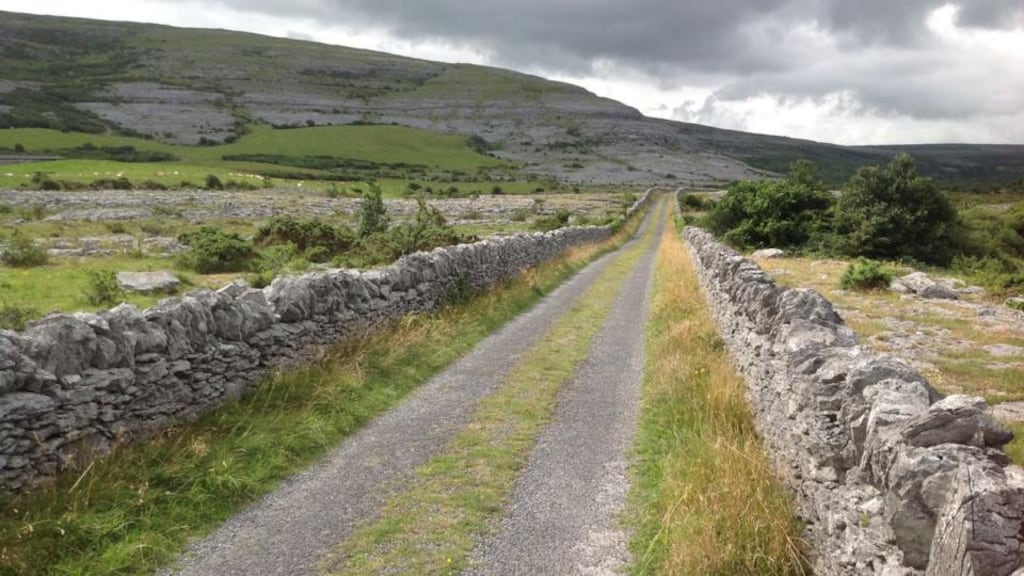 Resisting the lure of bears, birds of prey and coffee on a giant hoarding, I continued past the cave entrance gates to join a green road through a bleak but never barren landscape, with Aillwee Mountain towering above. The ageless appeal of the Burren now became inescapable, for in this place the history of every succeeding era is written in stone and so remains all around. Even my untrained eye can pick out a mesmerising array of ancient enclosures, stone forts and cairns alongside the route.