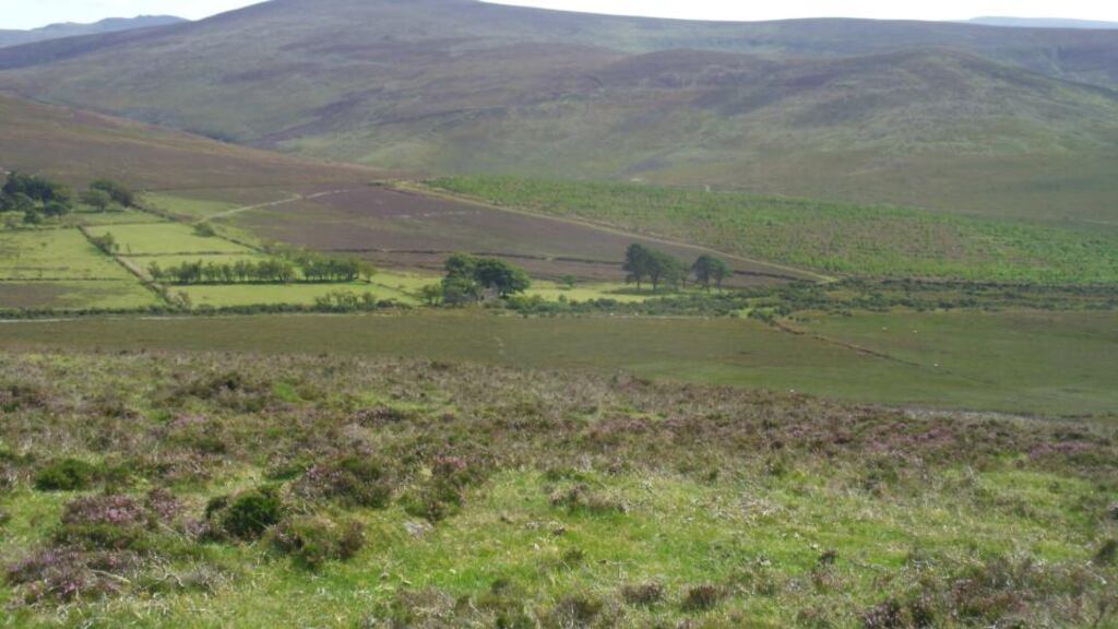 Ascending from Glennagad, I joined an enclosed lane that dallied easily up Scrouthea Hill to gain open mountainside and an altar and large white cross. Constructed to commemorate the Holy Year of 1950, it’s in a well-chosen location offering a sweeping vista of Clonmel and the plains of Tipperary.