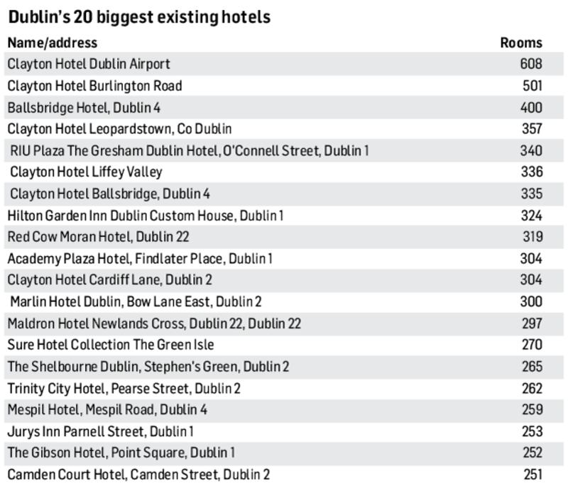 Data analysis seen by The Irish Times shows that there are some 100 new hotels or guest accommodation developments under construction or in the planning process in the capital. A further 49 extensions to existing hotels are in process. There are already more than 250 hotels in Dublin.