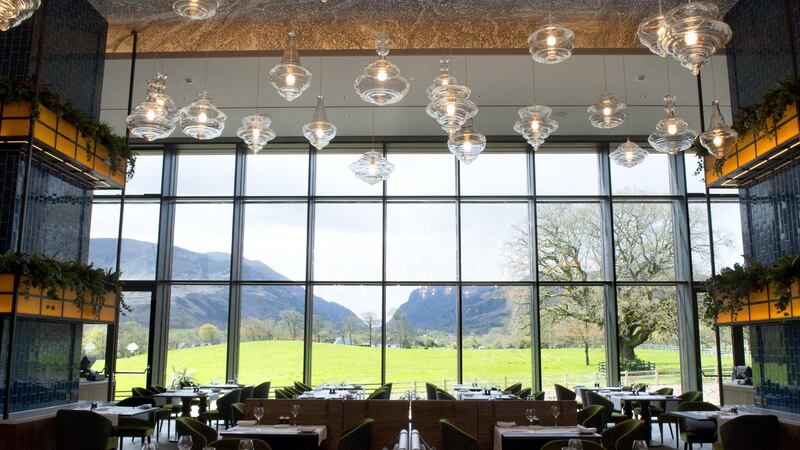 The hotel takes full advantage of the raised site in the Macgillycuddy Reeks. The dining room with a double-height ceiling sucks the Gap of Dunloe into the room. The scenery is spectacular.