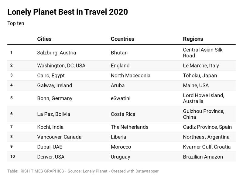 "Brilliantly bohemian" Galway has been named "one of the world's top cities for travellers in 2020" by travel guide Lonely Planet. The city scooped the accolade in Lonely Planet's Best in Travel 2020, its annual collection of the best travel destinations, trends, journeys and experiences for next year.