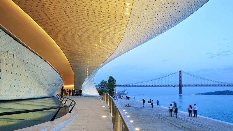 Designed by British architect Amanda Levete, MAAT opened on the banks of the Tagus to great fanfare last autumn. Comprising a former power plant and a separate curvy modern annexe with 7,000 square metres of exhibition space, some critics say the exterior – gleaming white stone turning gold in the setting sun – is the best bit.