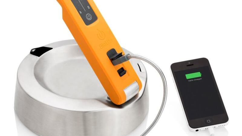 KettleCharge BioLite has an ever-expanding range of smart, eco-friendly gadget-charging camp stoves to which it's now added the KettleCharge. It mightn't look like a conventional kettle – which it's not – but it does the water-boiling bit perfectly on any open flame. The bonus is, using Biolite's thermoelectric technology, it delivers up to 10W of power to a built-in USB port as the kettle gets going. That's enough to charge your smartphone, tablet and more. The handle houses a display which readies you for charging and alerts if the water's low. And you can have a refreshing cuppa while your gadget is enjoying its own pick-me-up. $149.95 from biolitestove.com, available from Sept