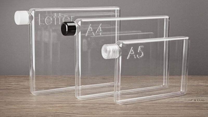 Why should a bottle be bottle-shaped? It's not necessarily the ideal form to slip into a business case or messenger bags. Memobottles take their shape from notebooks – rectangular, flat and thin – so they can slot in with your journal, tablet or even laptop. Continuing the theme, they are designed against paper sizes, available from A6 up to A4, or a litre in liquid luggage. €35 for A4 1 litre from Stock Design, Dublin