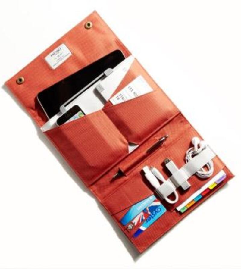 Designed to take an iPad mini or other 8” tablet, this is just one of Knomad’s range of handy organisers. Some come in leather, with others like this one in coated canvas with a leather trim. Your tablet slips into a protective, microfibre-lined pocket, with an array of other slots and straps for your smartphone, credit cards, passport, pens, cables and all the rest. This powered version has the bonus of a slimline 5000ma battery pack so your recharging stays neatly organised too.