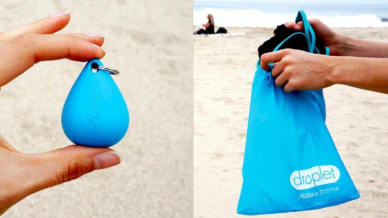Matador Droplet Wet Bag One might be more inclined to call this a dry bag, but the functionality is the same: keeping stuff dry in the wet or wet stuff safely separate from your dry. Its point of difference is how handily it packs away into a tiny key-ring silicon pouch. Unfolded, the wet bag has a 3 litre capacity, completely waterproof, so you could weather-protect your phone and car remote out in the wilds or stash away those chlorinated wet togs or stinky gym gear. $15 from matadorup.com