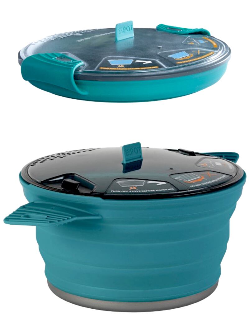 Sea to Summit X-Pot Sea to Summit is just launching a whole range of collapsible cooking wares, including pots and a kettle, for when packing-up is at a premium, such as when camping or boating. The smart-looking saucepans and casseroles have heat-resistant flexible silicone sides that can fold virtually flat when travelling, with handles that clip over to keep them that way. Each has an aluminium base to go on the heat, and clever thinking all round, with lids that are see-through and can double as strainers. From €50, see seatosummit.com for availability