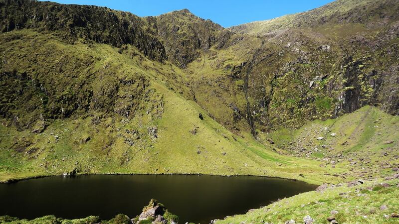 Yet, only 10km away on the northern side of the isthmus, within the boundaries of the Parish of Cloghane, there is a veritable congregation of lakes scattered attractively on the floor of the upper reaches of An Abha Mhor Valley or nestling in Cooms in the surrounding slopes and cliffs.