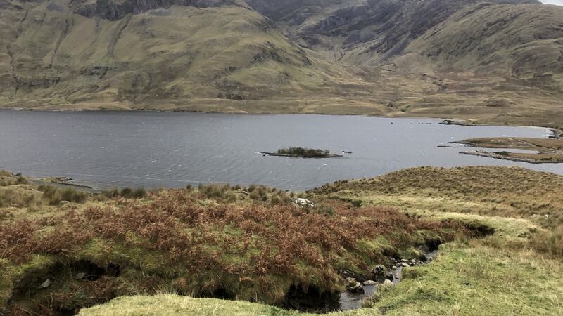 To my mind, Doolough is the dark heart of beautiful Mayo. It's a place of dark stories, dark waters and sombre slopes; a place where the skies weep as if for our Famine-era ancestors; a place where light and mountain shift and change under great trailing veils of rain and mist; where wild winds streak the waters with long foamy lines of white and yellow, and where moments of watery sunshine can transform a rocky slope into shining silver.
