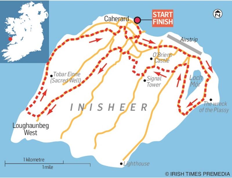 After passing a disused signal tower and schoolhouse, the route meanders along tiny roads and rustic lanes to reach the coastline at an attractive beach. Here, an island man addresses me in Irish; then as I struggle to comprehend his blas, he reverts to English. Inquiring where I live, he describes Tipperary as “a right rich county”. By contrast, he grew up in abject poverty when every young person was emigrating. “The 50s and 60s were terrible bad times here, we had nothing,” he explains. But what of today? Here, he is surprisingly insouciant. “We lost the fishing, but now we have the coláiste [Irish college] and the tourism is terrible busy. There is work and the population is going up again with people coming back.”