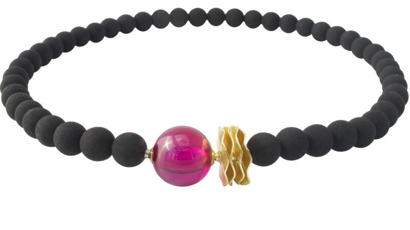 Eva Dorney is the creator of Clasped, an interchangeable collection of clasps and strands handmade in Dublin from pearls, gemstones and precious metals. Having trained as a goldsmith in Kilkenny, she set up on her own three years ago. Her jewellery is sold online at evadorney.com, and her lively blog discusses recent commissions and projects, including remodelling old pieces. This lava necklace costs €175, with ruby ball clasp, €295 and fluted gold connector, €150. Deirdre McQuillan