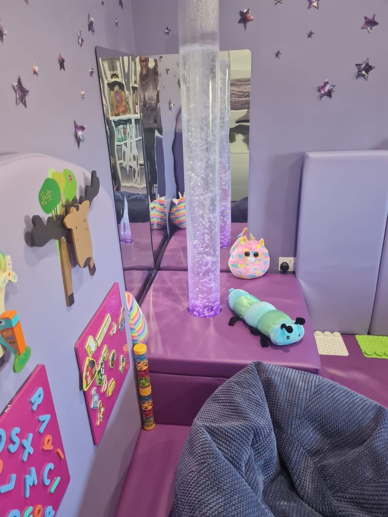 - In Lisa Daly’s old house, she designated a corner for her son Liam and kitted it out with beanbags, fidget toys and an affordable bubble tube from Argos. However as Liam grew older, she realised he needed a little bit more from his sensory space, so it’s important to plan and budget for future needs.