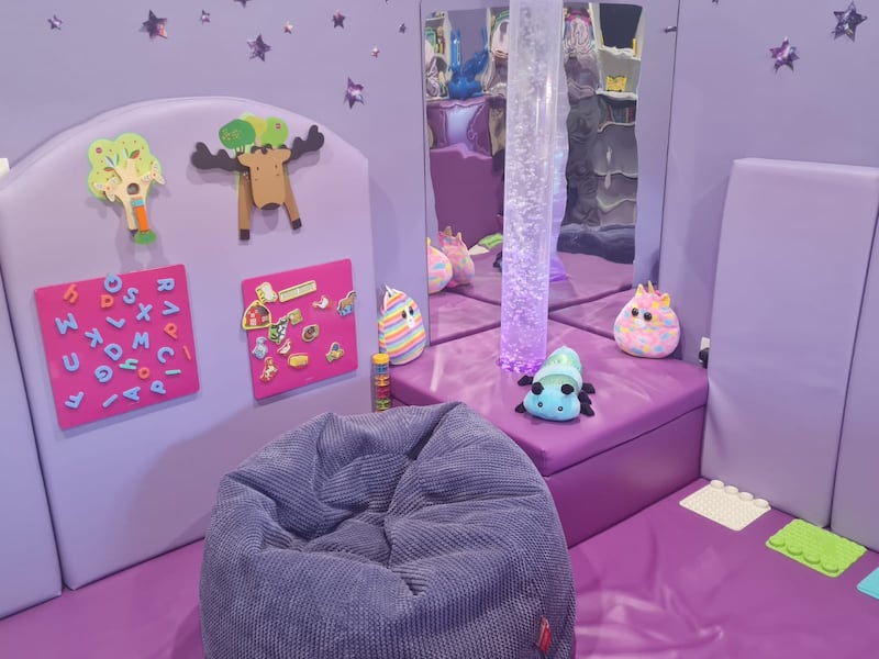 Glynn stresses that it is not, as some people might think, simply an expensive playroom, nor is it a luxury. For the girls, it represents their own designated safe space that they can retreat to if they become overwhelmed or agitated. It also allows them to learn a vital life skill: how to self-regulate their emotions and behaviour. Róisín is able to pull down the blackout blinds herself and turn on and off the laser light, and if she sees that Saoirse is getting upset, she’ll do that for her. “Then she cuddles her and holds her.”
