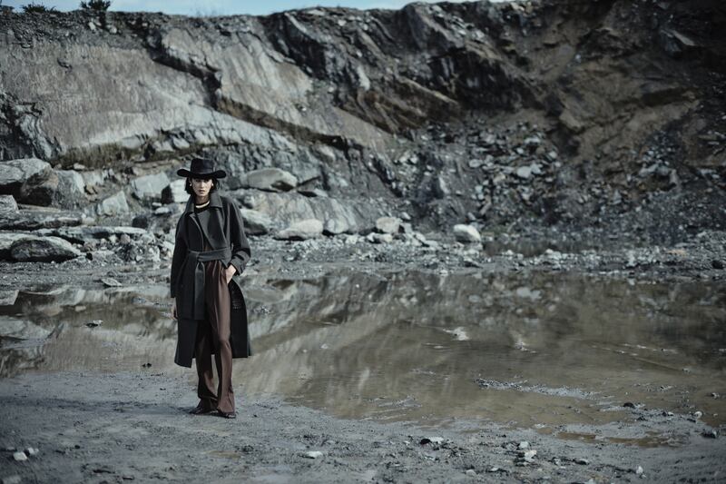 These photos of the Landskein collection were taken in a quarry in west Cork by Boo George, the award-winning London-based Irish photographer who owns a house in the area. It’s the first time he has captured an Irish fashion collection in Ireland, though he did make a short fashion film for Brown Thomas a few years ago and photographed an Armani collection in Galway. He is well known for his work on many international high-profile campaigns, most recently for Chanel and Louis Vuitton, and his portraits of Victoria Beckham graced Grazia magazine covers in May of this year.