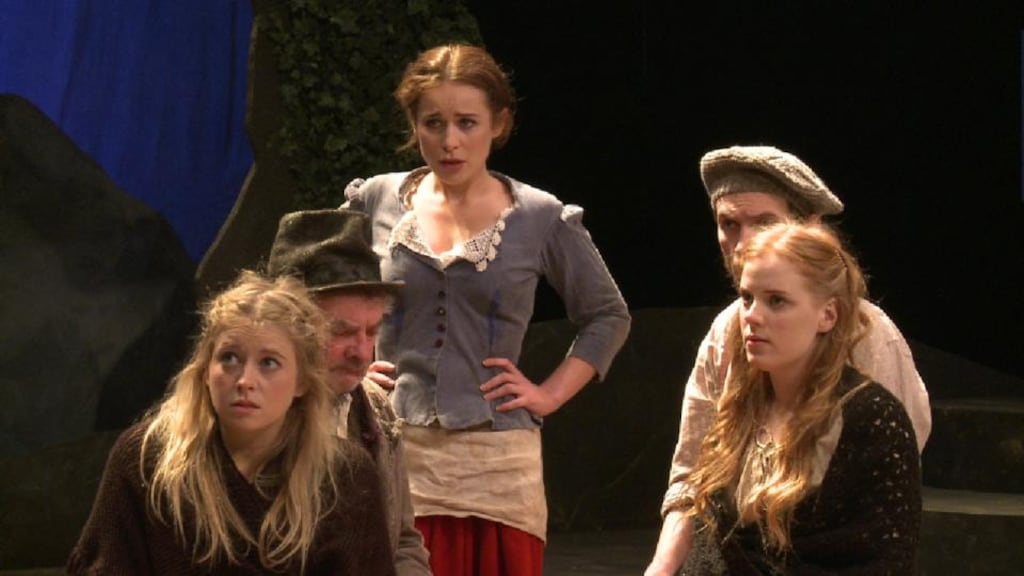 Just look at the students of the hedge school, an assembly of radiantly clean, barefoot villagers; girls wear lush red skirts and black shawls and men may accessorise with goatee beards and rakish sash belts. Set against the sun-bleached white walls of Stuart Marshall’s set, whose blue-sky backdrop will later transform into a cosmos of stars, it suggest a place somewhere between Andalucía and the Delta Quadrant.