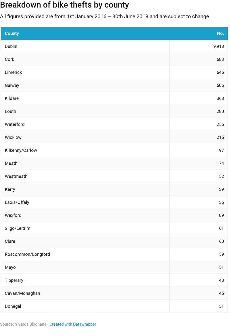 The Garda said many people targeted by bike thieves did not report the theft. And because of that it was impossible to determine more accurate figures.