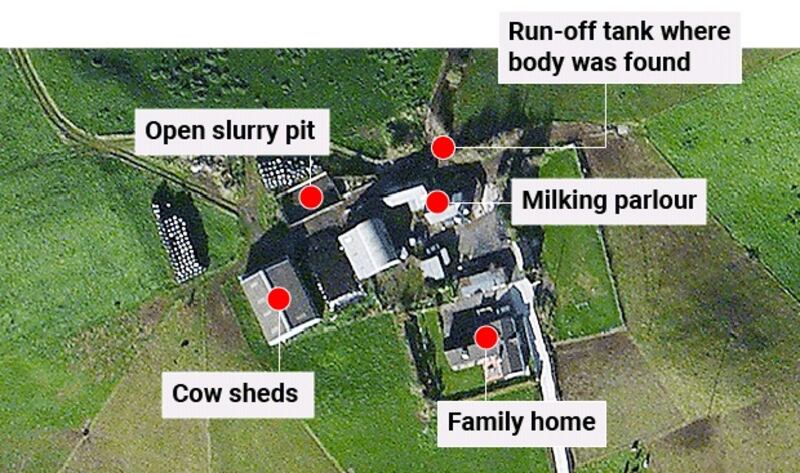 The following day he staged the discovery of the body, telling gardaí he needed water to agitate slurry in one of the sheds. He thought the old run-off tank from the dairy would contain water because a leak from the mains some weeks earlier had run into it.