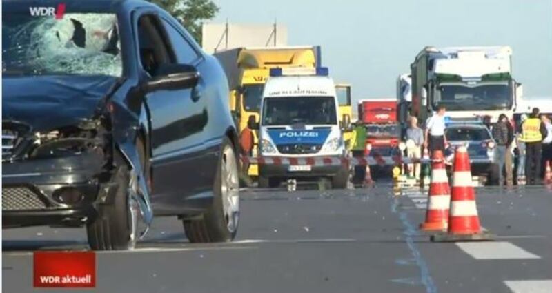 At 2.45am, as he sped away from the scene, he called the police, just as the man was stabbing an Estonian truck driver at the rest-stop. The attacker then ran on to the motorway where he was struck by a Mercedes. A postmortem at Cologne University Hospital revealed death was caused by multiple traumas from the impact.