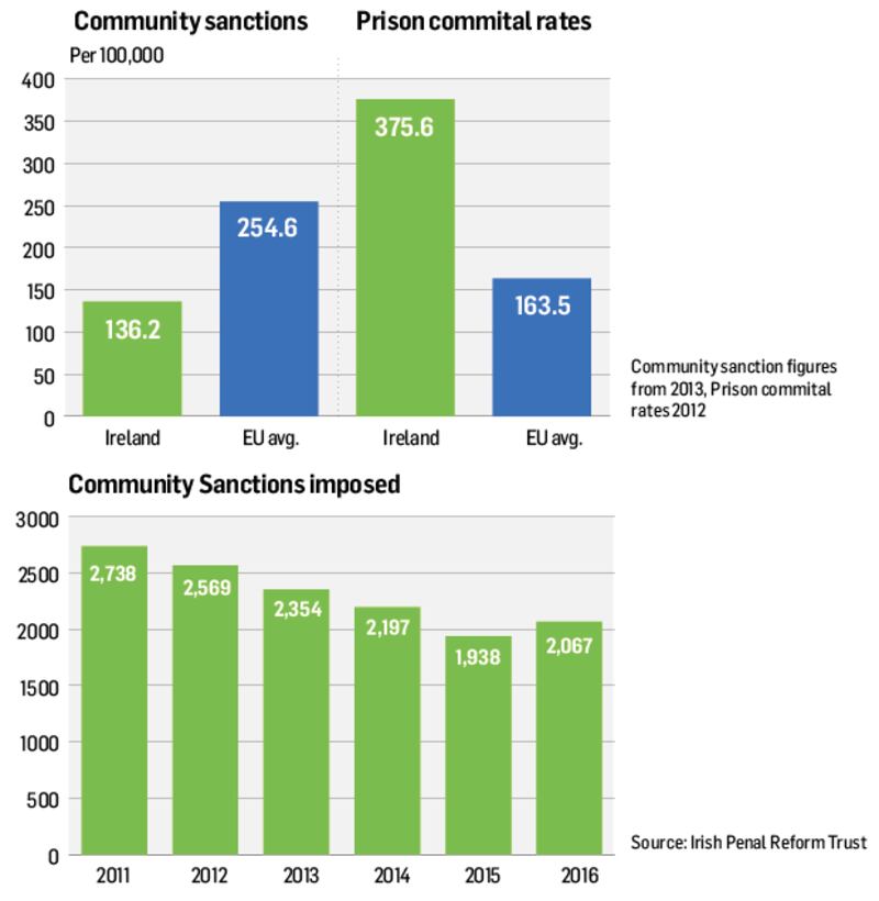 “Imprisonment causes a number of serious social harms, and therefore should only be used sparingly ... the numbers in prison should be reduced,” the IPRT paper Community Service in Ireland says. “Ireland’s penal policy should instead be focused on non-custodial responses to crime.”