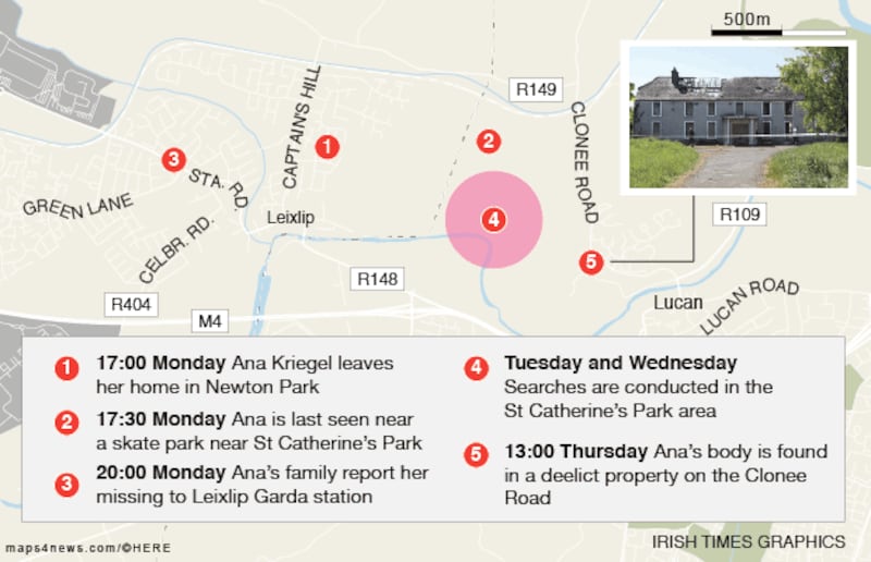 He said Anna’s family had reported her missing at about 8pm on Monday, just three hours after she left their home at Newtown Park, Leixlip, and failed to return.