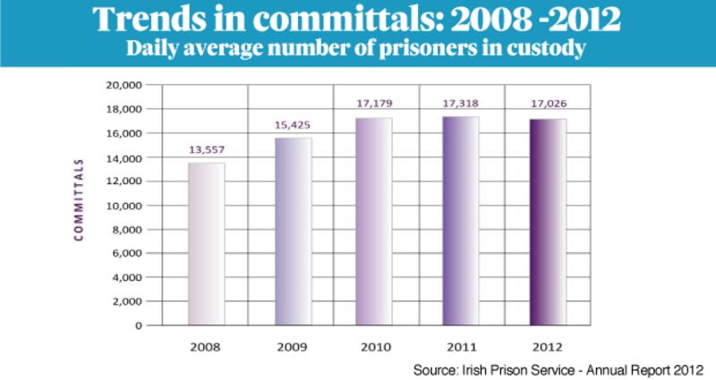 The number of committals last year was 17,026, a reduction of 1.7 per cent on the previous year. The fall, while modest, follows a 45 per cent increase in committals in the five-year period from 2007 to 2011.
