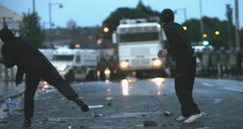 It is understood the disorder erupted after a group of men attempted to remove Irish tricolour flags from lamp posts and were challenged by the PSNI.