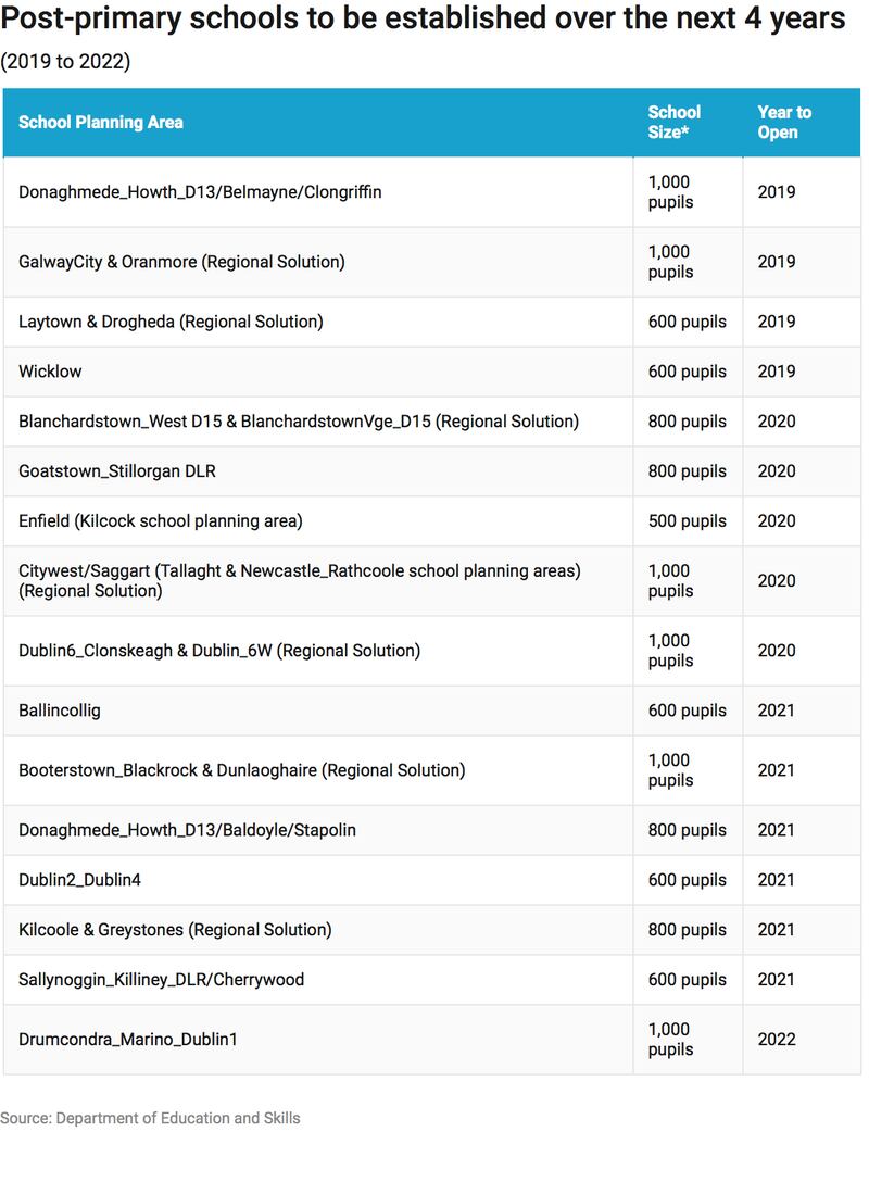 The department is under acute pressure to keep pace with the growing school population over the coming years. Primary enrolments are set to peak this year, while the number of young people at second level is set to reach an all-time high by 2025. This will see enrolments at postprimary level exceed 400,000 students for the first time.