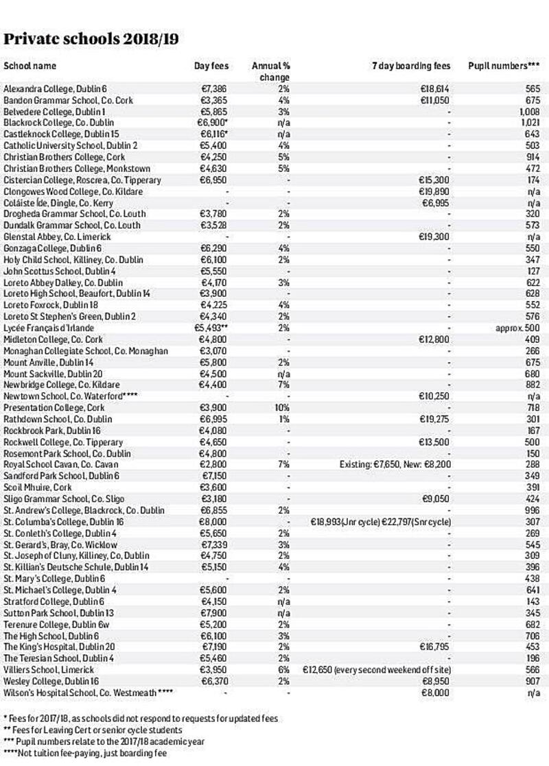 Most fee-charging schools, meanwhile, have increased their fees this year by 1-10 per cent. Typical day pupil fees now range from €3,500-€7,000.