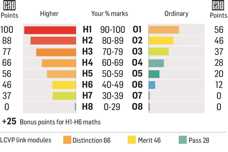 The old familiar grading system – A1, B2, C3 – is replaced with grades from H1 to H8 (for higher-level subjects) and from O1 to O8 (for ordinary level subjects).