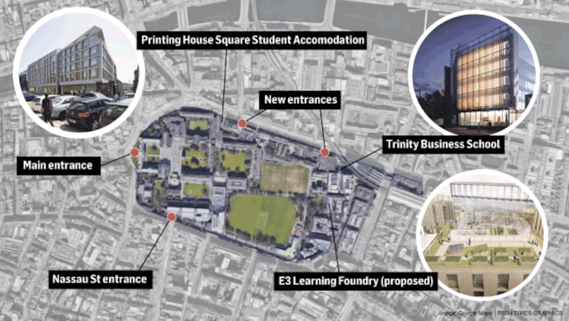 This may be about to change. A plan to modernise Ireland’s oldest university envisages opening up the campus with a series of new pedestrian entrances and forging closer links with the city around it.