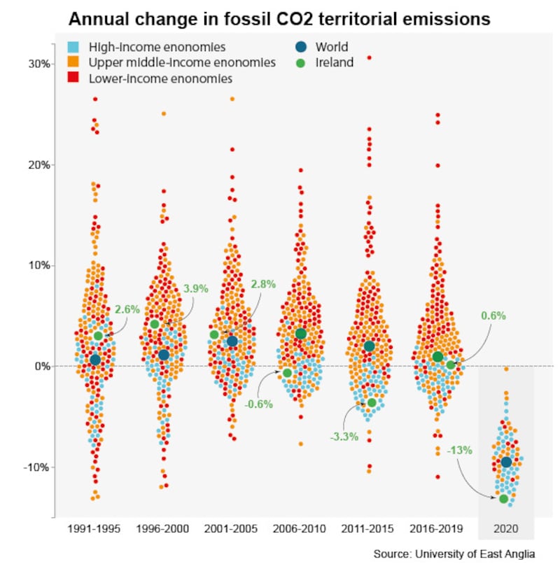The findings were published in Nature Climate Change on Wednesday. Emissions increased in 150 countries including Ireland. Global emissions grew by 0.21 billion tonnes per year during 2016-2019, compared to 2011-2015.