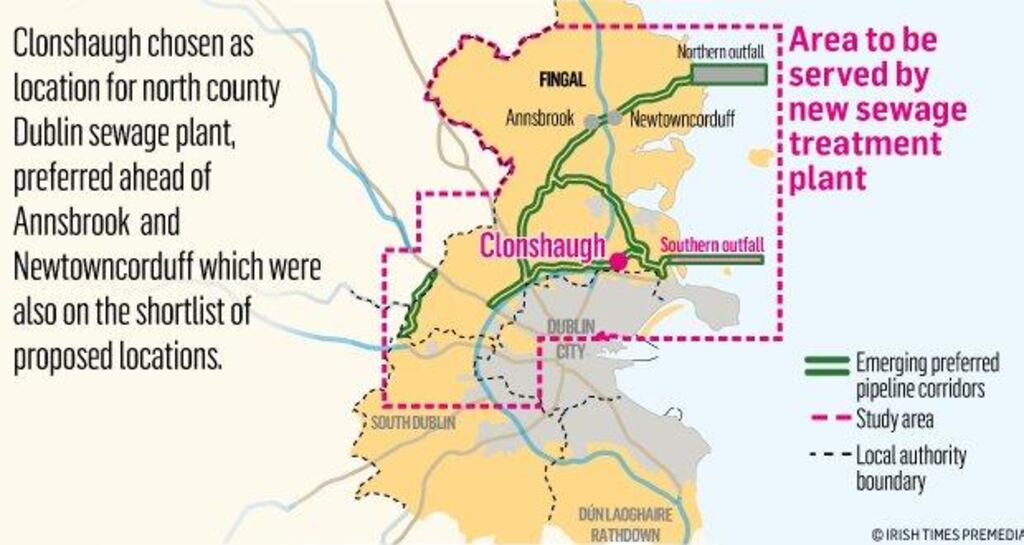 Three locations had been shortlisted for the 20-hectare facility: Annsbrook and Newtowncorduff near Lusk, both with an outfall near Loughshinny, north of Rush, and Clonshaugh with an outfall near Ireland’s Eye south of Portmarnock.