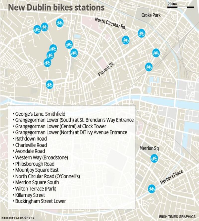 The National Transport Authority (NTA) in February 2016 wrote to then minister for transport Paschal Donohoe outlining plans for the 15 new bike stations which would allow the rental scheme to be extended to Grangegorman – representing the first major expansion of the scheme into suburban Dublin.