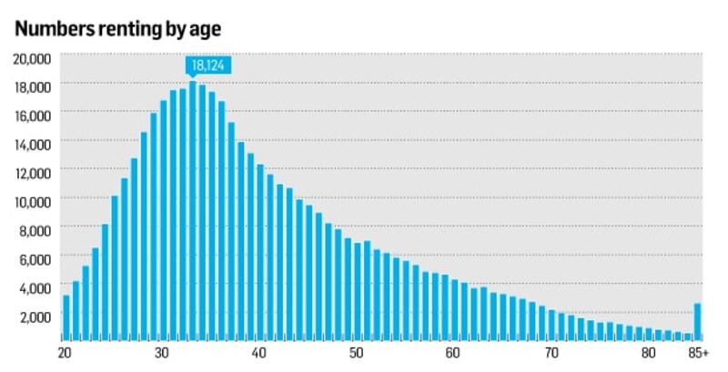 Renting is now more common than owning for younger people, at least until the age of 35 (in 1991 the equivalent age was 26).