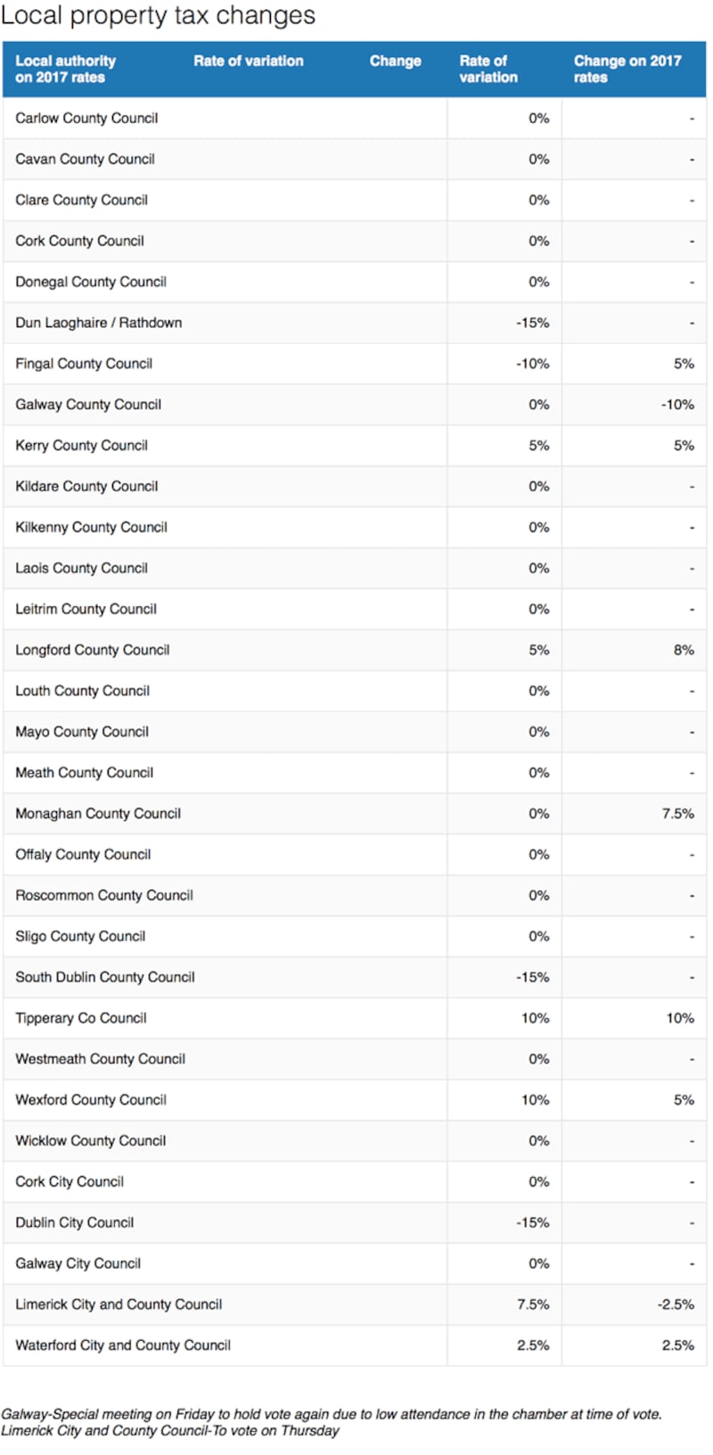 Every year councillors vote on whether to apply increase or decrease the local property tax (LPT) between plus or minus 15 per cent of the baseline rate.