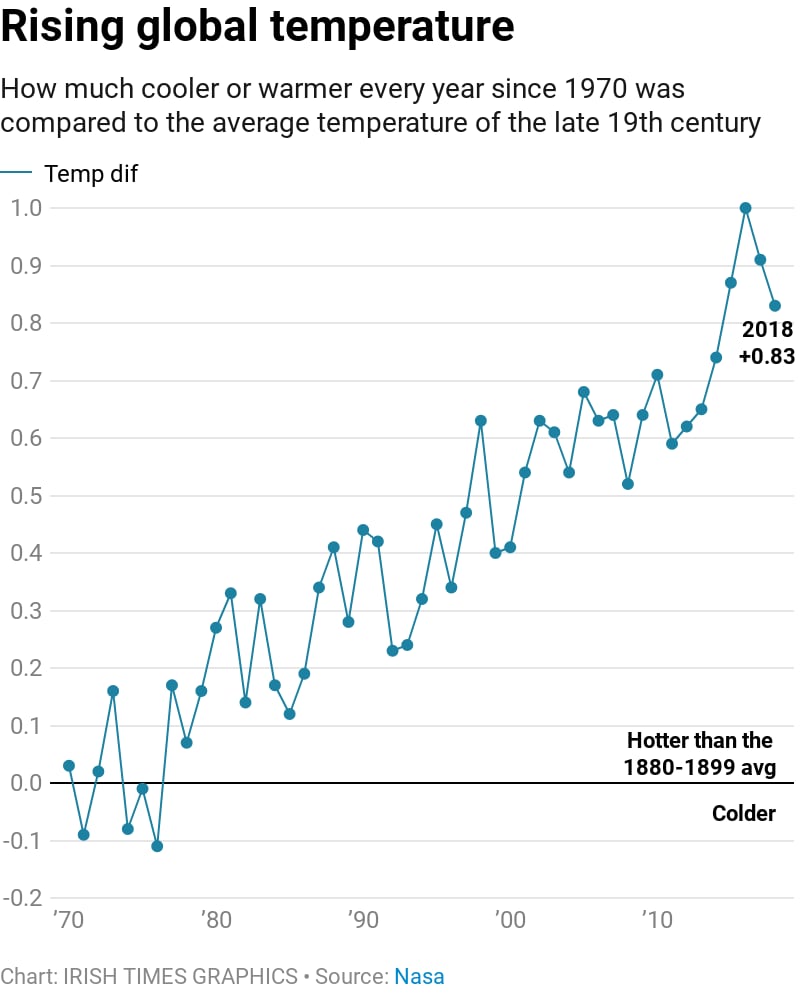 Average global surface temperatures were 1.0 degree above pre-industrial times in 2018, the WMO said. "The long-term temperature trend is far more important than the ranking of individual years, and that trend is an upward one," WMO secretary general Petteri Taalas added.