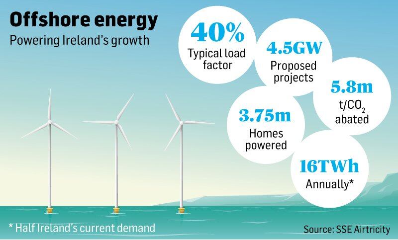 Over the past SSE has directly invested over €2.5 billion in development of sustainable, low-carbon energy infrastructure in Ireland, with four new onshore wind farms in the past 16 months. But the shift is to offshore.