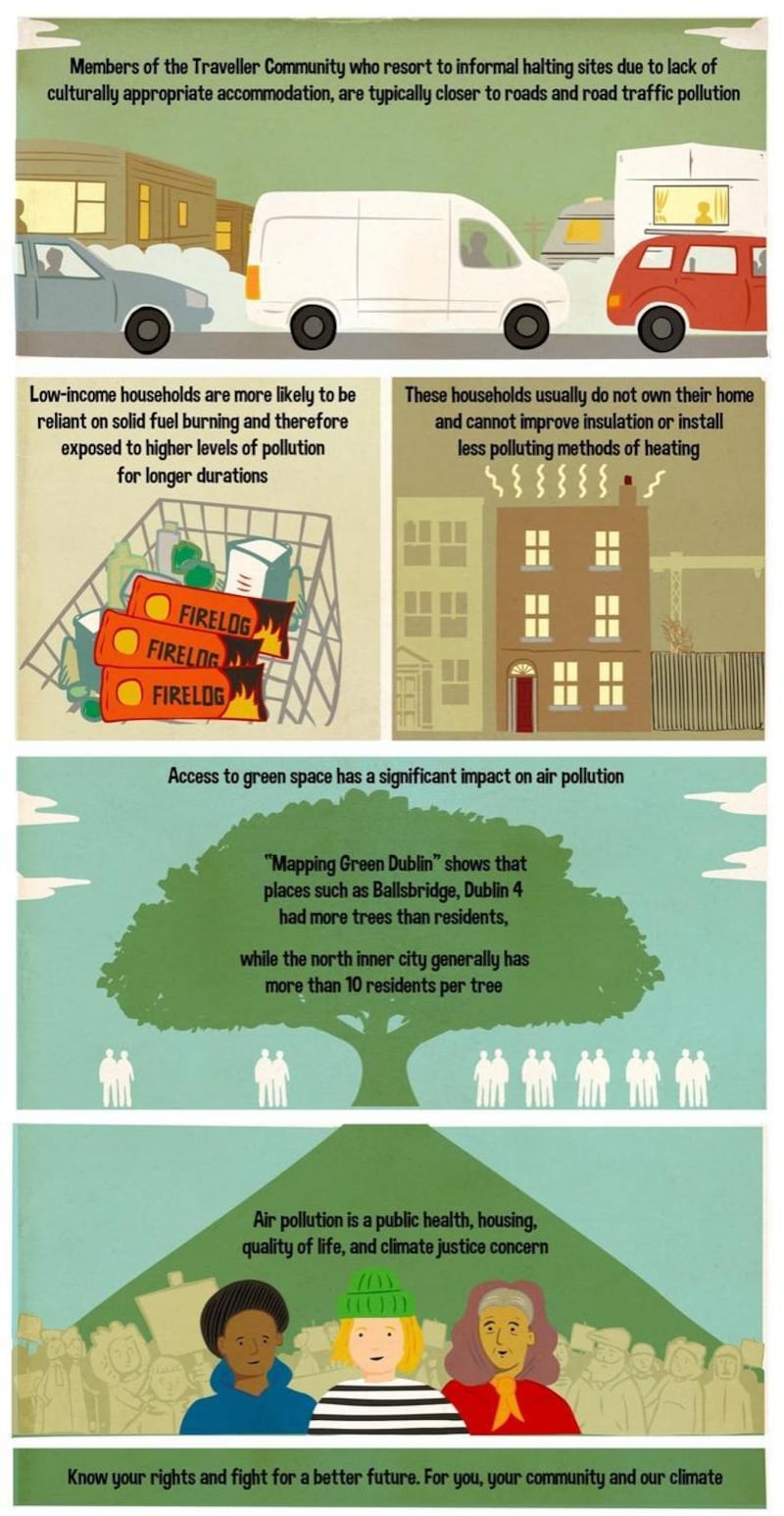 The report will be launched by Green Minister of State for Community Development Joe O'Brien and features new infographics on environmental justice aimed at schools and community groups, using illustrations by artist Eoin Whelehan.