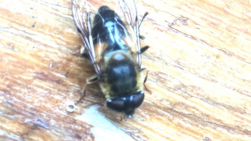It’s the narcissus fly, a hoverfly that mimics bumblebees. The larvae live in the bulbs of various members of the narcissus family and cause severe damage to them.