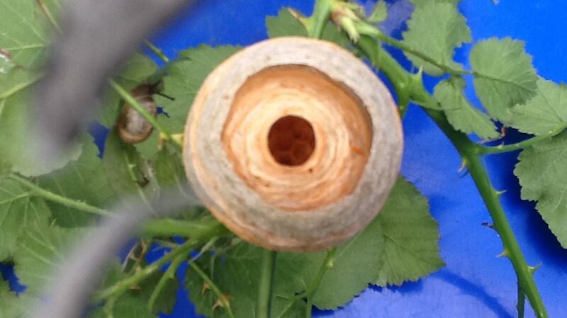 I found this paper-thin creation on a briar that I pulled off an old wall. It was about the size of an egg and, like Russian dolls, had a smaller one inside and another inside that. There was a honeycomb structure in the bottom.