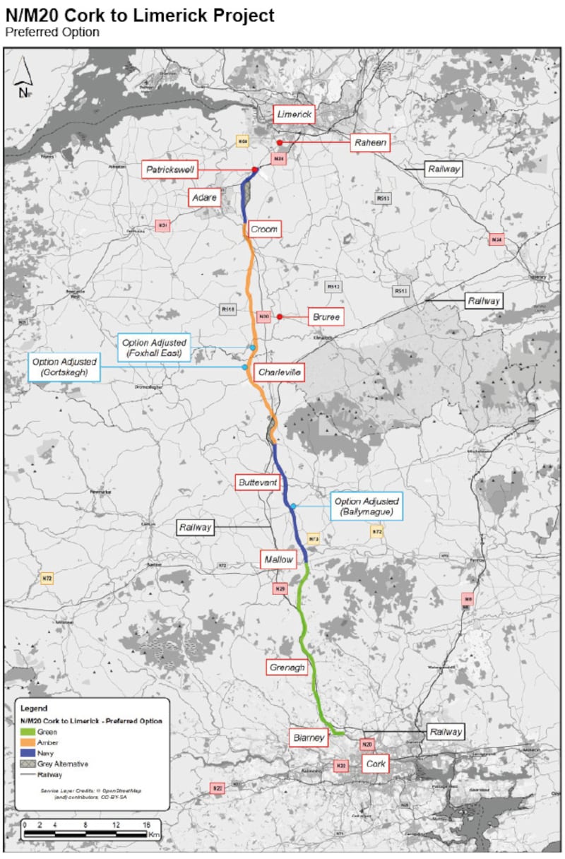 The N/M20 Cork to Limerick Motorway Scheme, which was to form part of the government's Atlantic Corridor strategy to link Letterkenny to Waterford, was progressed through planning and design phases and the scheme was submitted to An Bord Pleanála in 2010 for statutory planning approval.