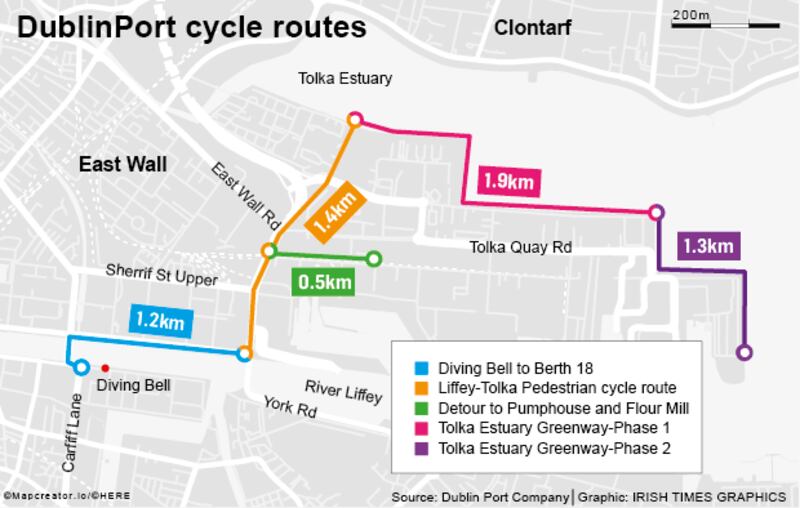 Dublin Port will next April apply to the city council for permission for the cycle route which will run within port lands opposite East Wall Road, the access road for the Dublin Port Tunnel.