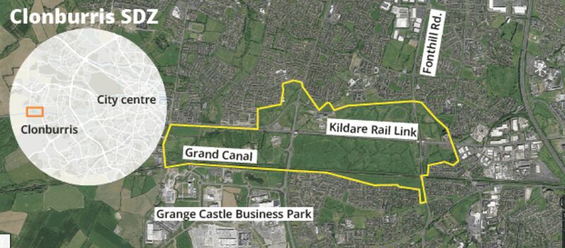 About 280 hectares of former farmland at Clonburris, straddling both sides of the Dublin-Kildare railway line and the Grand Canal just over 10km from the city centre, has been designated by the Government as an SDZ to tackle the capital’s housing crisis.